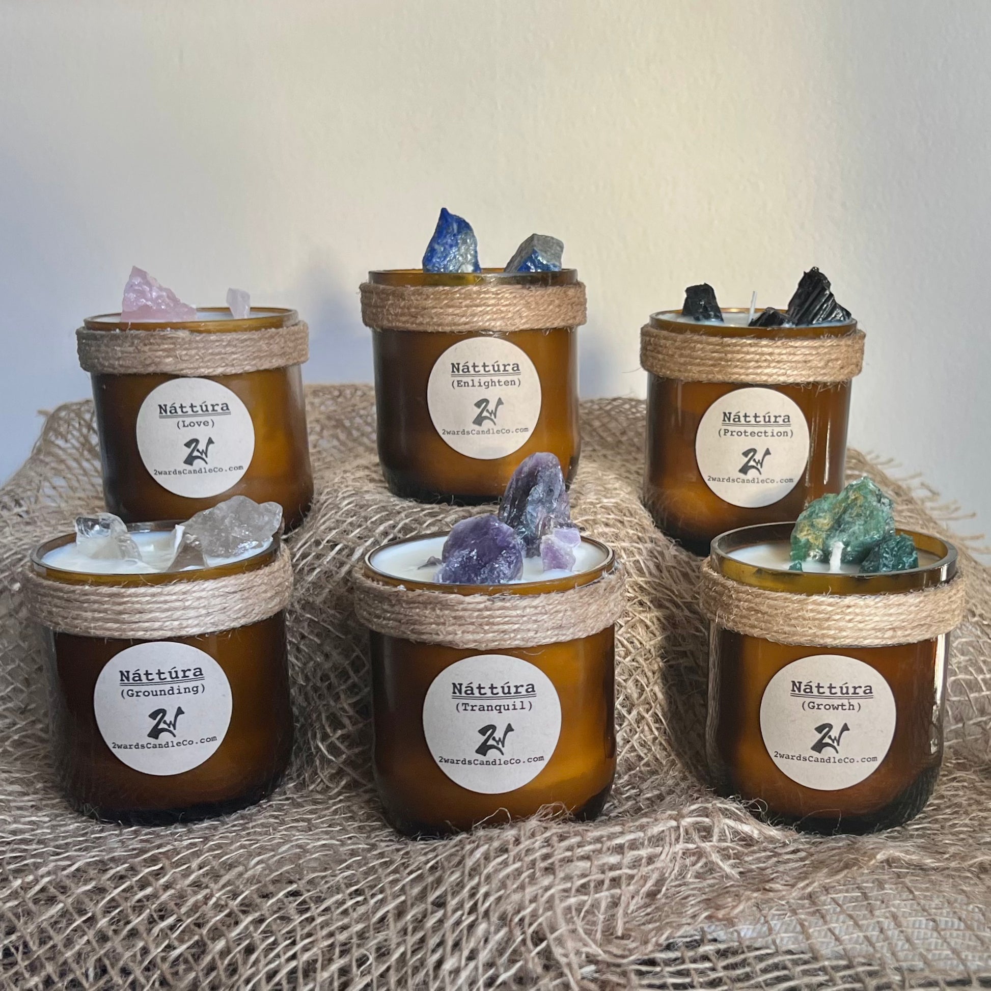 Another extension of our Náttúra collection. Our new 8oz signature candles, each with their own special stones and healing properties.