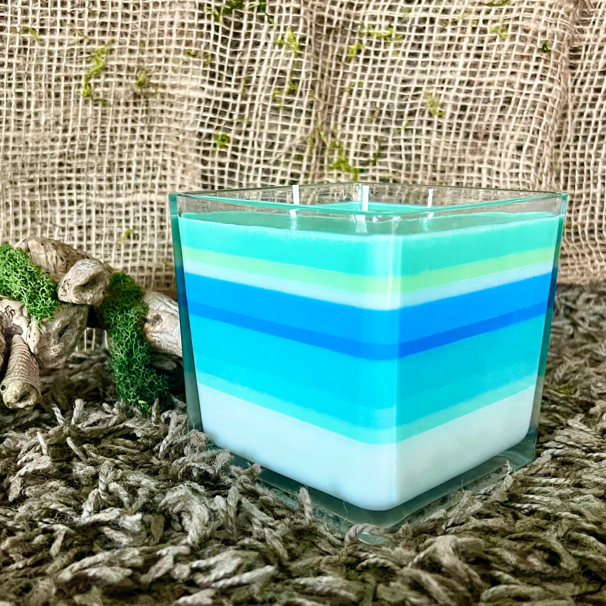36oz of our signature “Spiked Cucumber Water” fragrance. Soy wax in a reused glass vase.